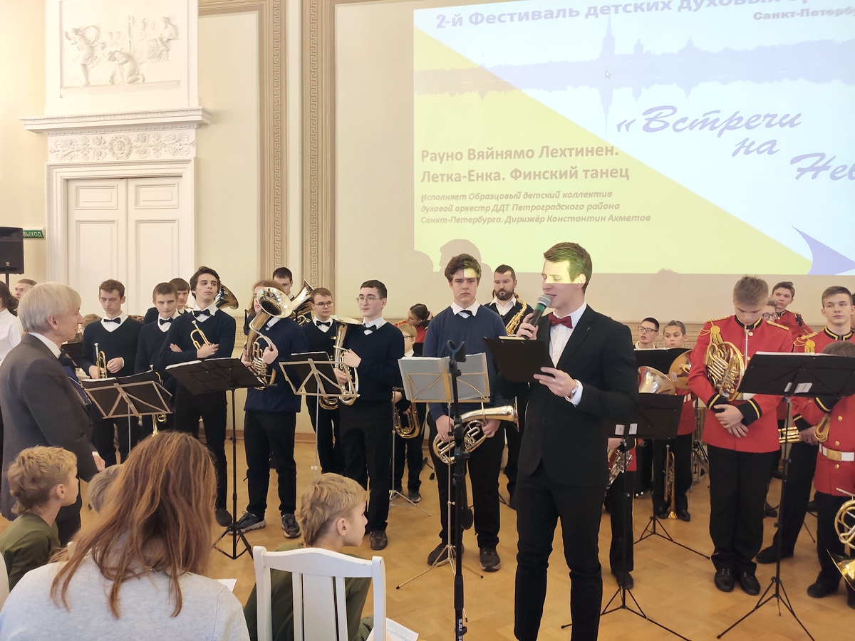 После двухлетнего перерыва в Белоколонном зале состоялся Второй фестиваль-конкурс духовых оркестров «Встречи на Неве». Мастерство юных музыкантов, исполнявших известные произведения русских и зарубежных композиторов, оценивало компетентное жюри, состоящее из профессионалов: композитора, заслуженного работника культуры РФ, профессора кафедры духовых и ударных инструментов СПб ГИК В.А. Ивановского, заслуженного артиста России, художественного руководителя и главного дирижера Ансамбля песни и танца им. И.О. Дунаевского СПб ГДТЮ В.М. Мурадяна, руководителя духового оркестра школы искусств им. Д.С. Бортнянского Ю.А. Жуланова.
