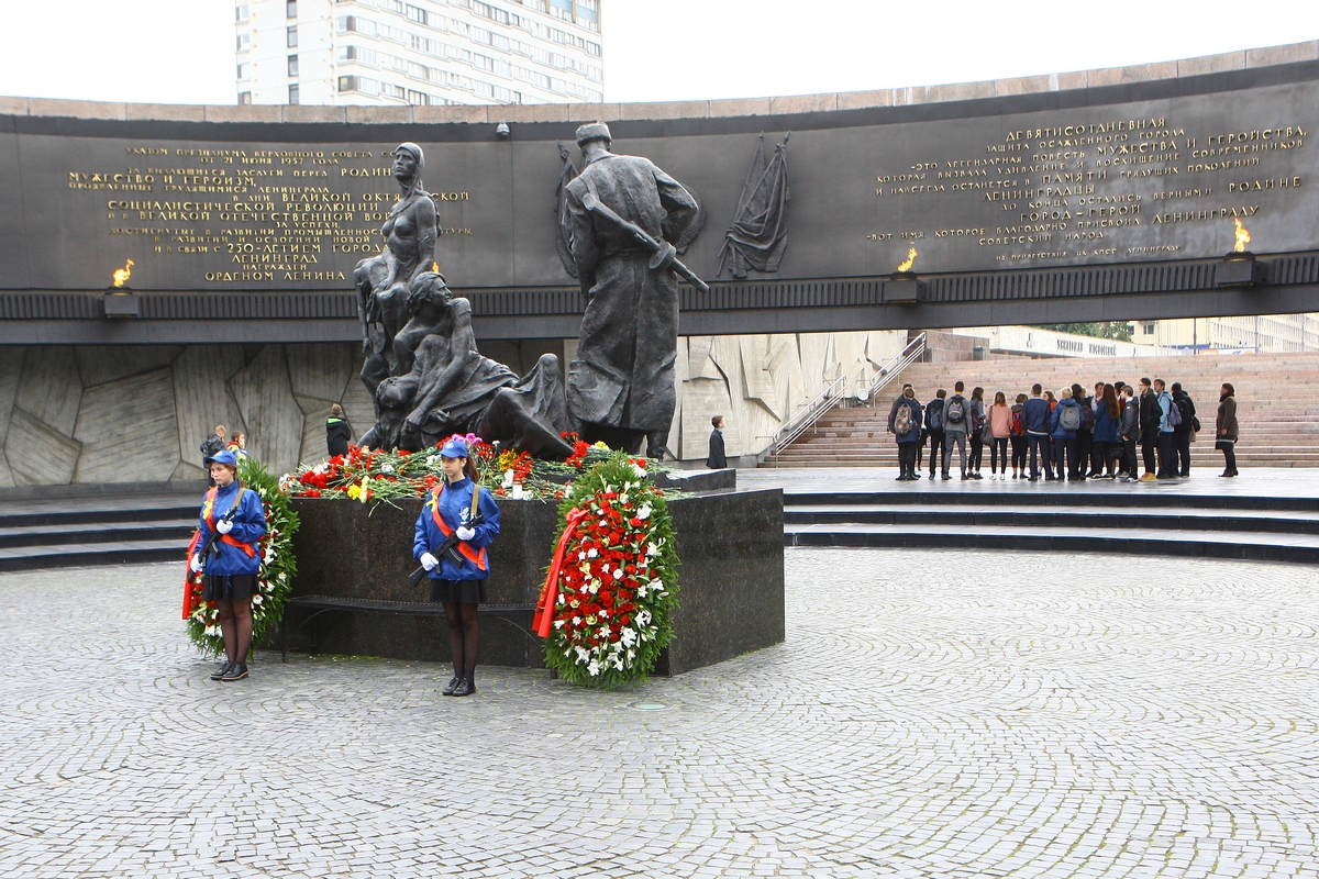 В память о защитниках и жертвах осажденного Ленинграда по традиции прошла минута молчания, а к Монументу юные петербуржцы возложили цветы.