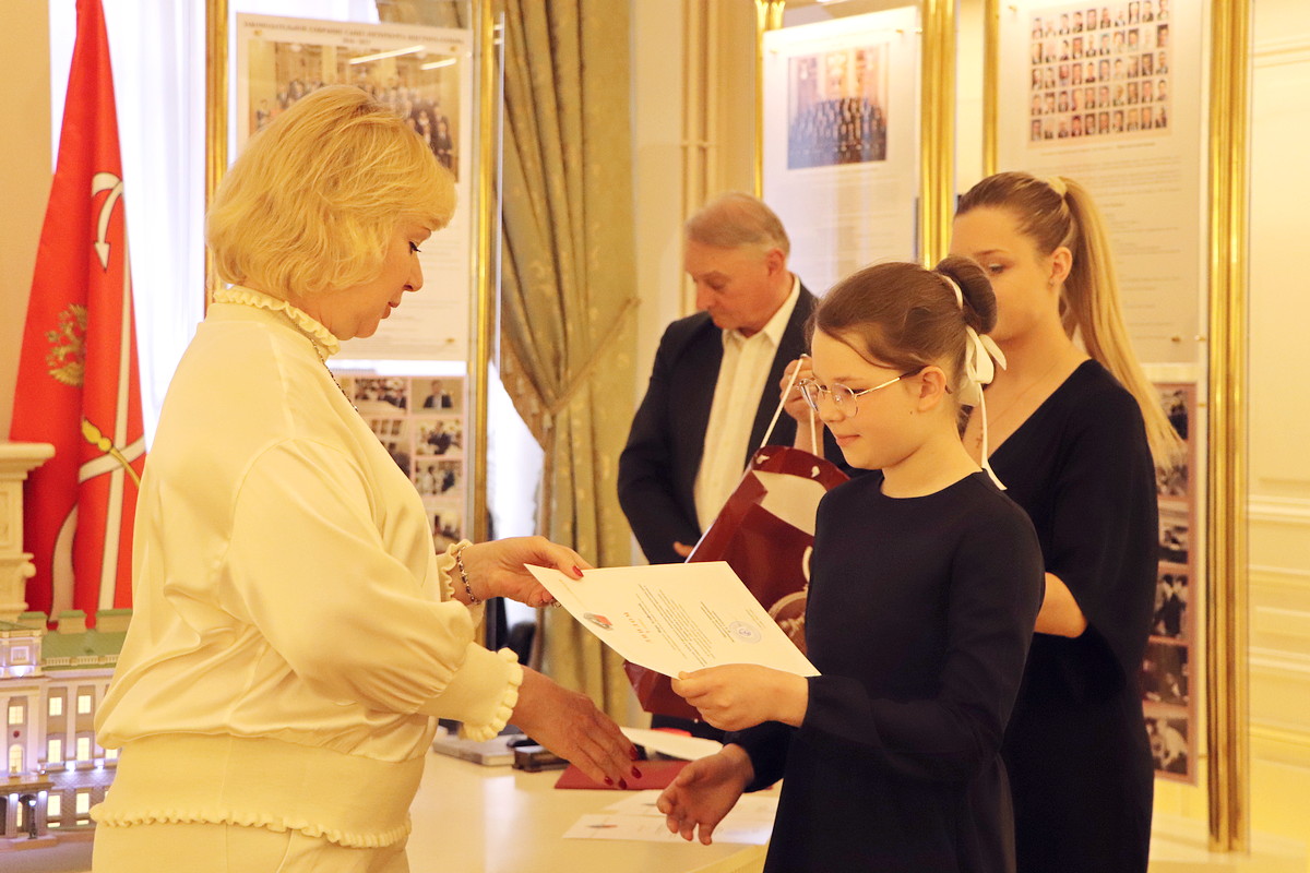На церемонии награждения, которую провела председатель правления Всемирного клуба петербуржцев Наталия Евгеньевна Сидоркевич, были названы имена победителей и призеров Городского конкурса исследовательских работ юных генеалогов «Родословные петербургских школьников в истории России и города» и победители и призеры конкурса «Английский Петербург». Поздравляя участников от имени президента Всемирного клуба петербуржцев, генерального директора Государственного Эрмитажа Михаила Пиотровского, Наталия Евгеньевна отметила важность исследовательских работ школьников в данном направлении, сохранение исторической памяти, значимость изучения Петербурга как многонационального и поликонфессионального города, а также поблагодарила участников и их педагогов.