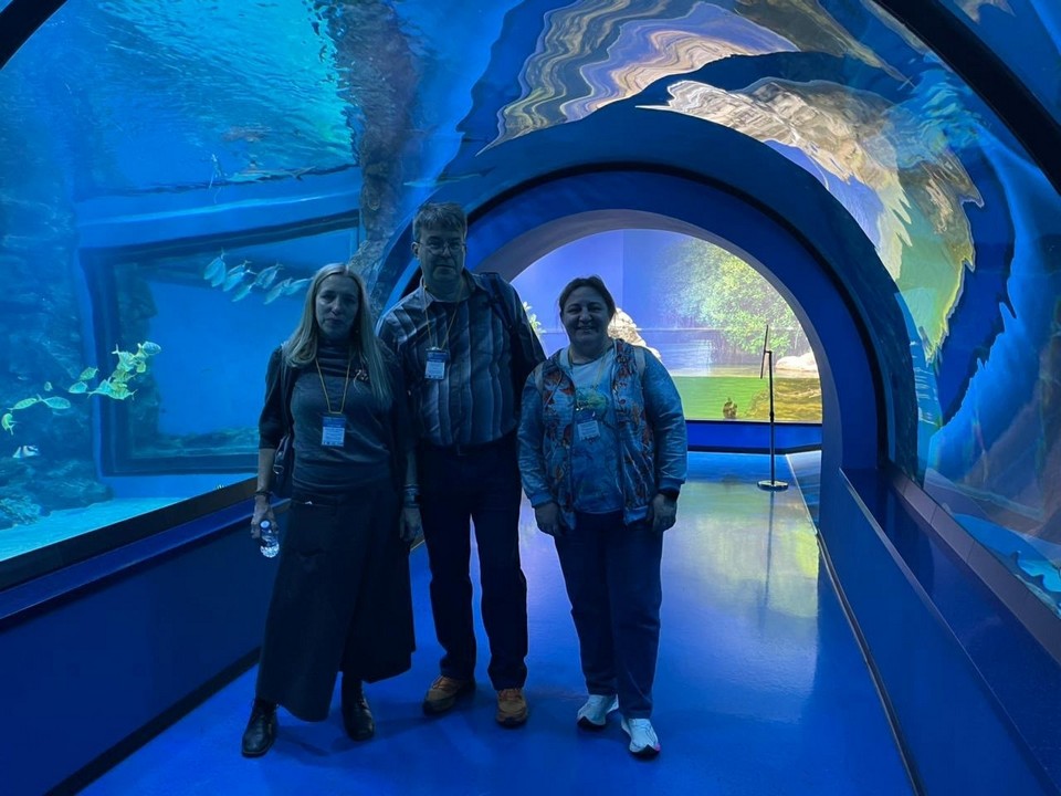 На конференции педагоги Светлана Викторовна Кириллова, Наталья Александровна Захарова и Олег Дмитриевич Филиппов делились опытом и рассказывали коллегам о профориентации для школьников в структуре обучения аквариумистики, а также о форматах полевых практик на берегу водоема и создании биотопных аквариумов.