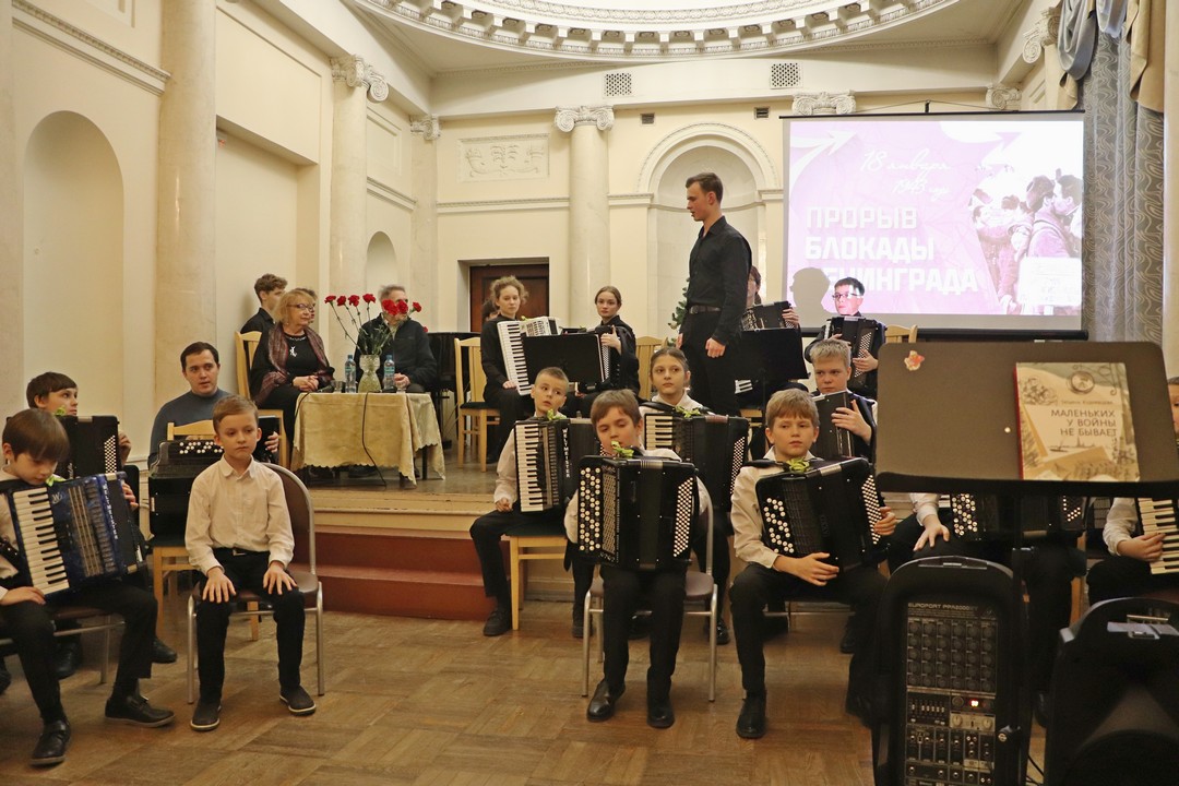 19 января в Концертном зале Отдела художественного воспитания состоялся традиционный концерт Образцового детского коллектива Оркестра баянистов «Мы помним о вас», посвящённый Дню полного освобождения Ленинграда от фашистской блокады. Это памятное музыкально-литературное событие объединило поколения и стало данью уважения мужеству и стойкости ленинградцев, переживших трагические годы блокады.