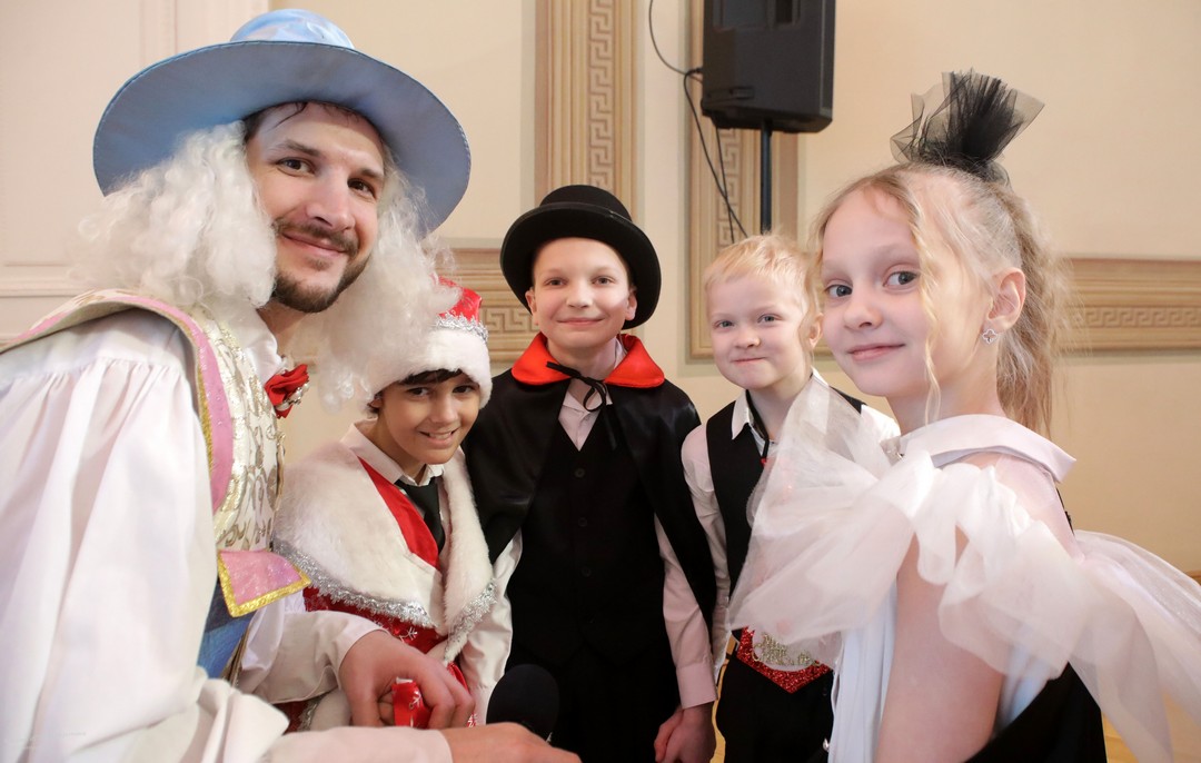 Программа представляла собой яркое сочетание театрального действа вокруг главной новогодней красавицы, костюмированного шоу и выступлений, организованных самими детьми, а также увлекательного путешествия по историческим парадным залам Дворца, наполненного играми и заданиями.