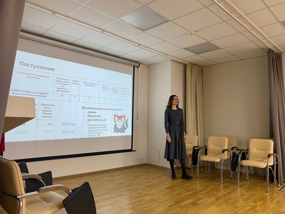На встрече студентка подробно рассказала ребятам о специфике обучения в одном из ведущих медицинских вузов страны, а также об особенностях организации учебного процесса и высоких требования к фундаментальной подготовке студентов.