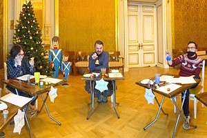 В Аничковом дворце побывал лидер рок-группы «Пилот», писатель и поэт Илья Кнабенгоф, он расписал новогоднюю игрушку для елки...