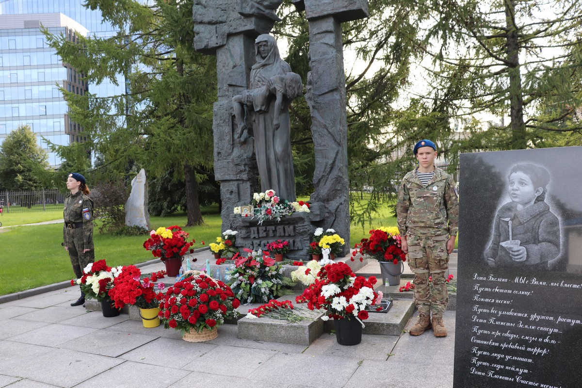 У памятника «Детям Беслана» в этот скорбный день ребята стояли в почётном карауле, отдавая дань памяти тем, кто погиб в страшной трагедии 2004 года. В церемонии приняли участие активисты РДШ, представители осетинской диаспоры и служители церкви. На странице РДШ Санкт-Петербург в социальной сети ВКонтакте проходила онлайн трансляция акции.
