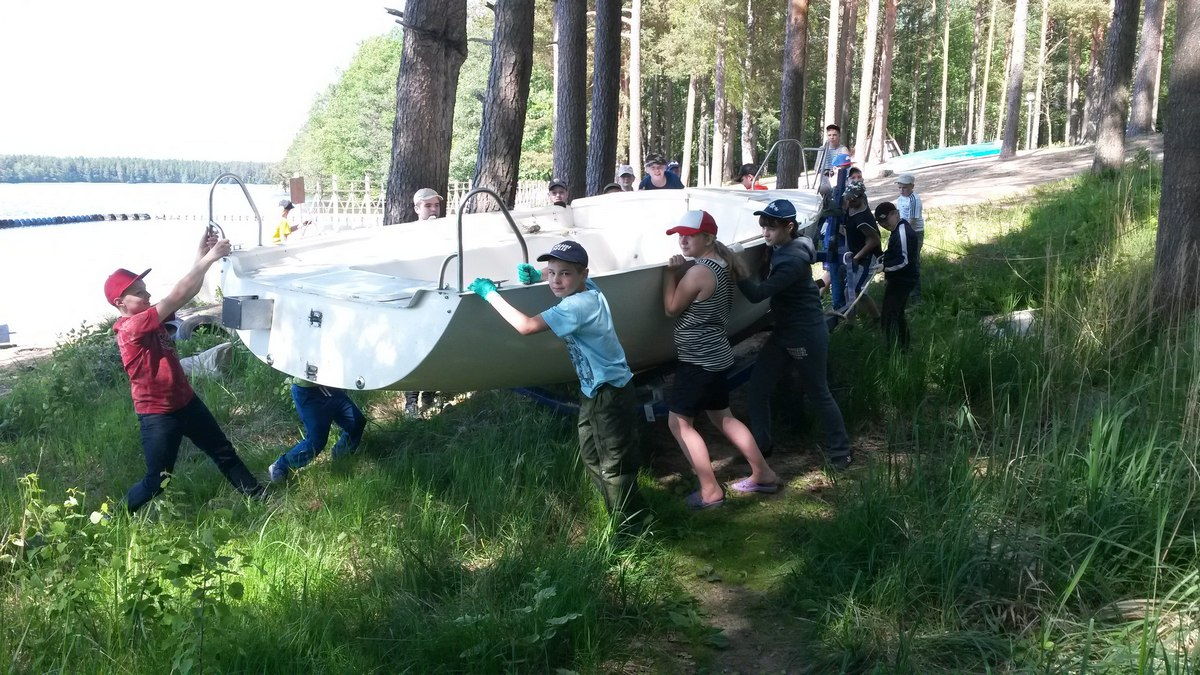 Первая смена в Загородном центре детско-юношеского творчества «Зеркальный» для юнг – прежде всего, открытие учебной навигации, а значит, спуск на воду флотилии Зеркального. Это серьезная работа, требующая сноровки и сплочённости, но будущим морякам трудности не страшны. На второй день после прибытия в лагерь ребята дружно взялись за дело.