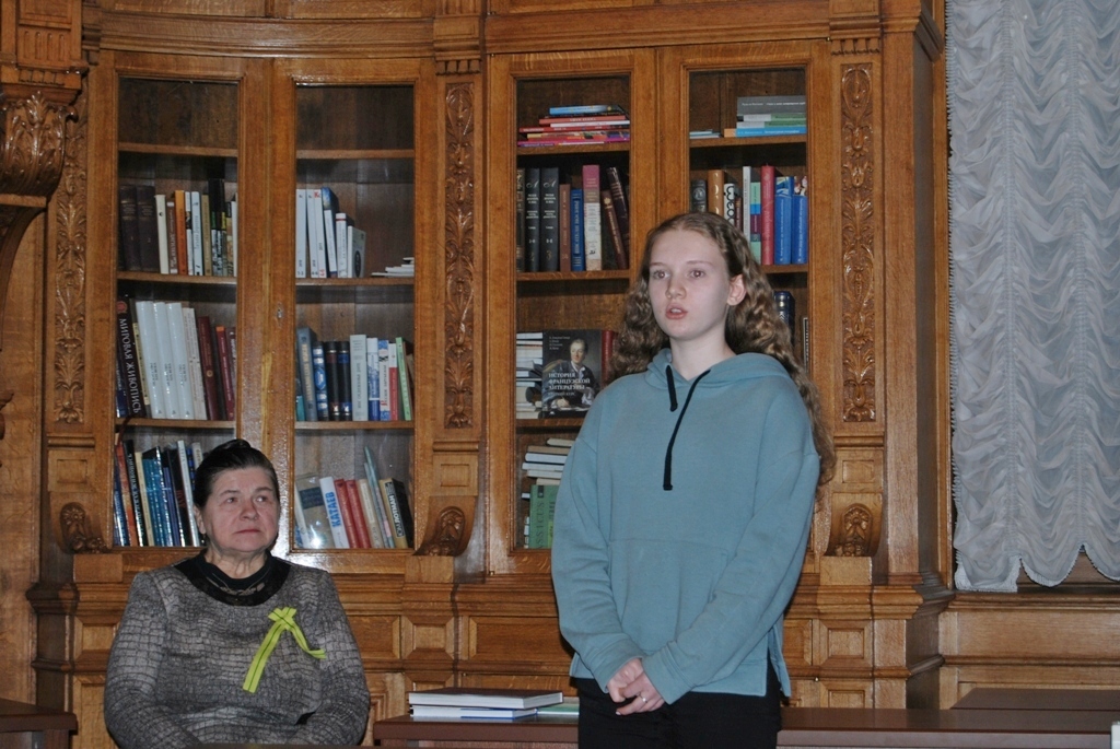 Анна Анатольевна Яковлева, педагог Студии художественного слова, прочитала стихотворение Анатолия Владимировича Молчанова «Памяти Юрия Воронова», а Наталья Михайловна Бондарик, руководитель клуба «Стажер», поделилась воспоминаниями о встрече с «летописцем ленинградской блокады» Анатолием Владимировичем Молчановым. Воспитанники клуба «Стажер» рассказали о том, как хранится память о военных днях в их семьях.