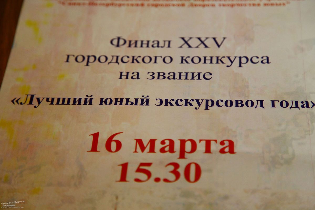 16 марта в Санкт-Петербургском городском Дворце творчества юных состоялся финал XXV городского конкурса на звание «Лучший юный экскурсовод года».