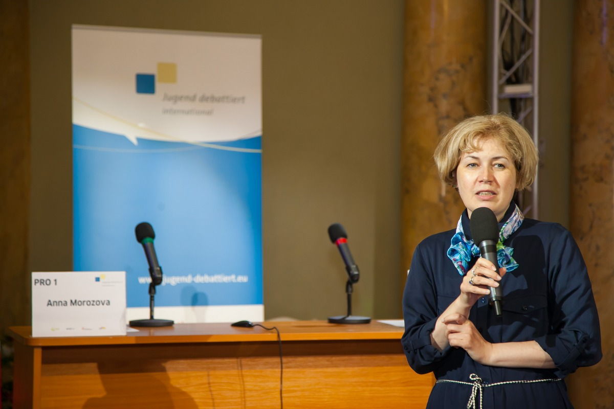 19-20 мая в Концертном зале Аничкова дворца состоялся VII Национальный финал Международных молодежных дебатов в России. Финал конкурса по риторике на немецком языке проходил между четырьмя лучшими дебатерами России на тему: «Нужно ли отменить Олимпийские игры?» Победительницей национального этапа стала Анна Морозова из Москвы.