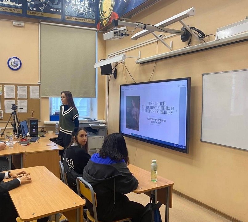 Ксения Горюнова – выпускница лицея 2022 года, обучается по направлению «Юриспруденция». Ксения провела занятие для лицеистов, где рассказала об особенностях обучения в Высшей школе экономики, а также о том, в каких олимпиадах можно принять участие для поступления в вуз.