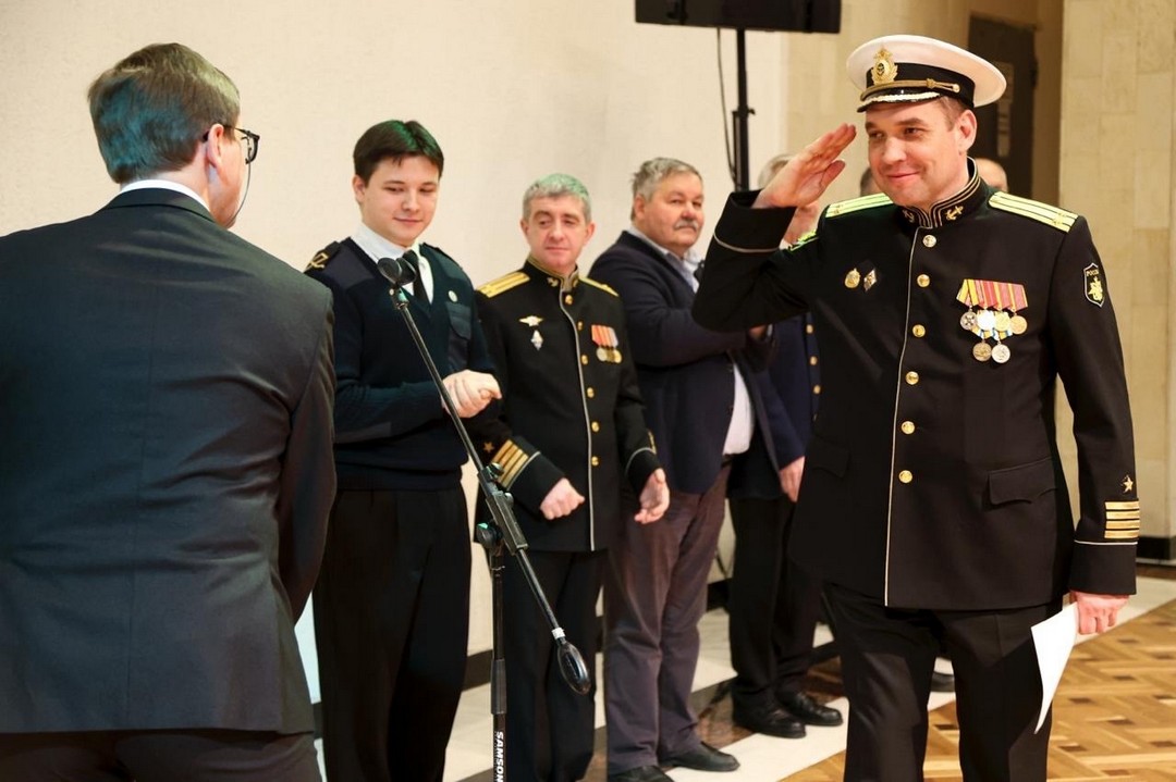 Руководитель Клуба Александр Владимирович Вошко вручил Благодарности Дворца педагогическому коллективу, благодаря которому ребята изучают морское дело, учатся помогать товарищам, вырастают настоящими патриотами и поздравил строй исторической цитатой великого русского адмирала Павла Степановича Нахимова: «У моряка нет трудного или легкого пути! Есть один путь – славный!». С этого года цитата закреплена в клубной зачетной книжке вместе со словами Торжественного обещания.