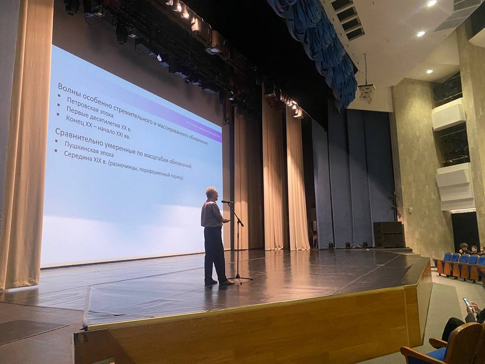 Михаил Яковлевич объяснил лицеистам феномен «Можно пожалуйста», рассказал о разновидностях заимствования. Лекцию с интересом слушали не только учащиеся, но и их учителя.