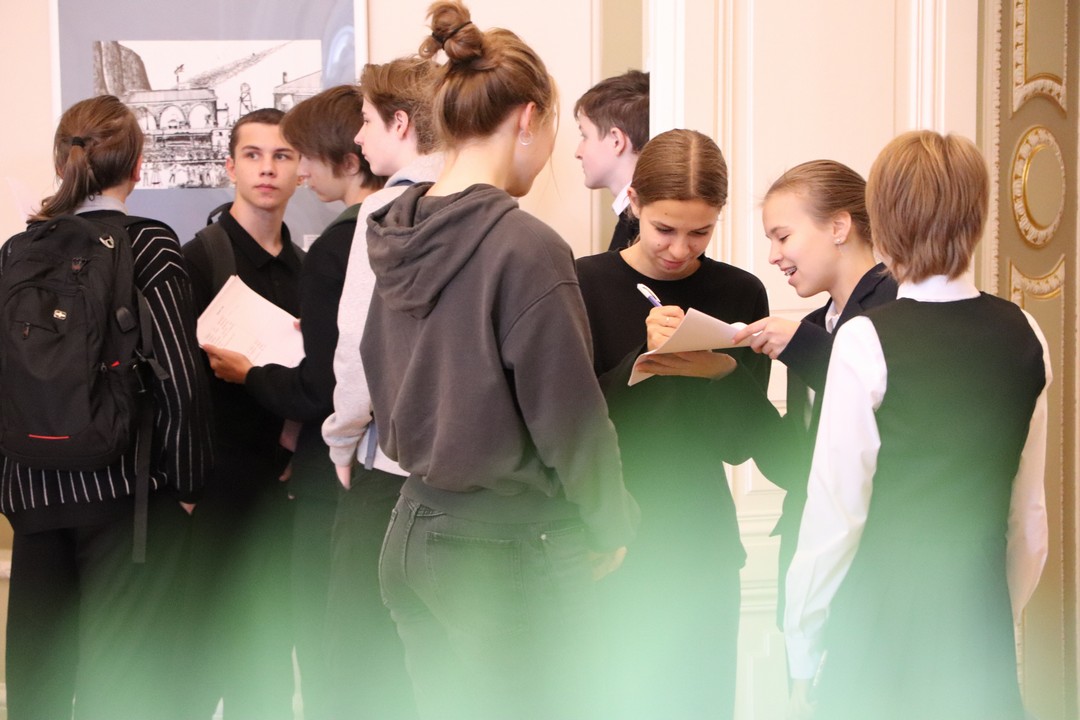 Восьмиклассники и десятиклассники выполняли заданиях, в ходе которых должны были вспомнить интересные факты, услышанные на экскурсии 1 сентября.