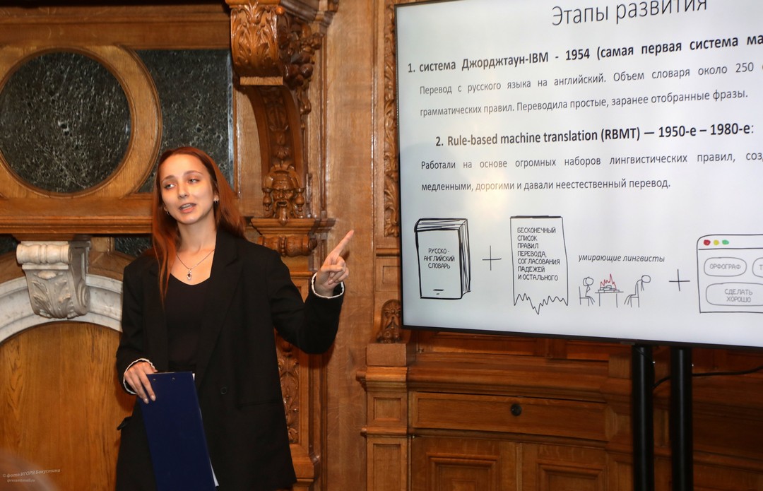 Об истории праздника рассказала педагог-организатор и ведущая Наталья Запевалова, отметив вклад каждого поколения переводчиков в культурное наследие.