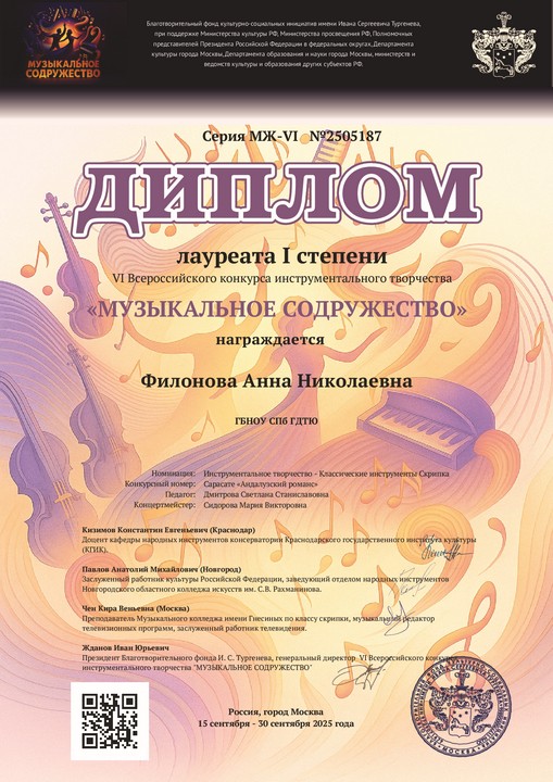 В сентябре в Москве прошел VI Всероссийский конкурс инструментального творчества «Музыкальное содружество».