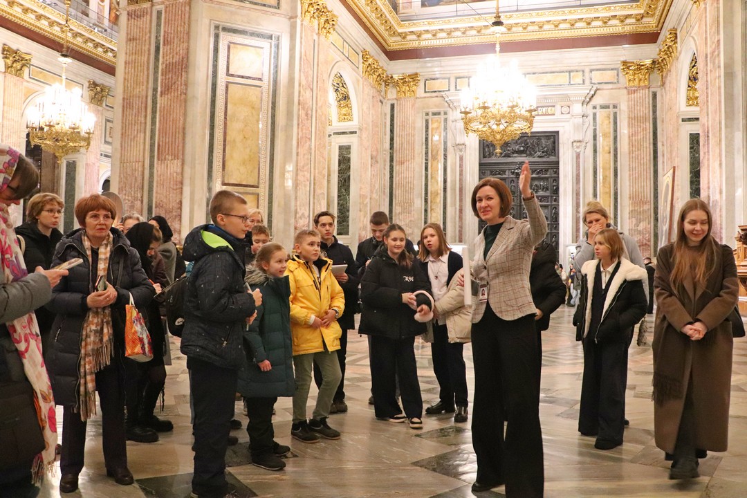 В Государственном музее «Исаакиевский собор» методист сектора музейной педагогики Кристина Викторовна Иванова познакомила ребят и педагогов с особенностями проведения экскурсии в Исаакиевском соборе, поделилась своим опытом и рассказала, на что стоит обратить внимание во время экскурсии: как взаимодействовать с экскурсантами, как поставить группу, чтобы всем было видно объект рассказа и многое другое. Мастер-класс также прошёл в формате экскурсии, поэтому ребята узнали не только теорию и практику экскурсоведения, но и познакомились с историей строительства Исаакиевского собора.