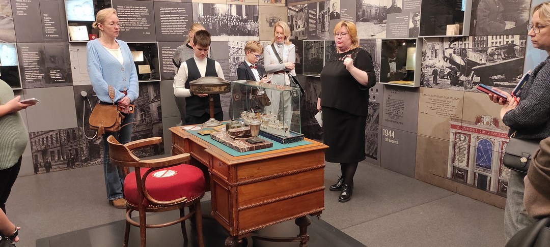 В Государственном мемориальном музее обороны и блокады Ленинграда главный хранитель музейных ценностей, экскурсовод, член жюри Регионального конкурса юных экскурсоводов школьных музеев - Анна Геннадьевна Савельева провела для участников конкурса познавательную экскурсию. Ребята узнали много нового и интересного из истории Музея, а также познакомились с профессией экскурсовода. Анна Геннадьевна поделилась своим опытом, подробно рассказала о «скрытой» части работы экскурсовода – составлении методической разработки экскурсии.