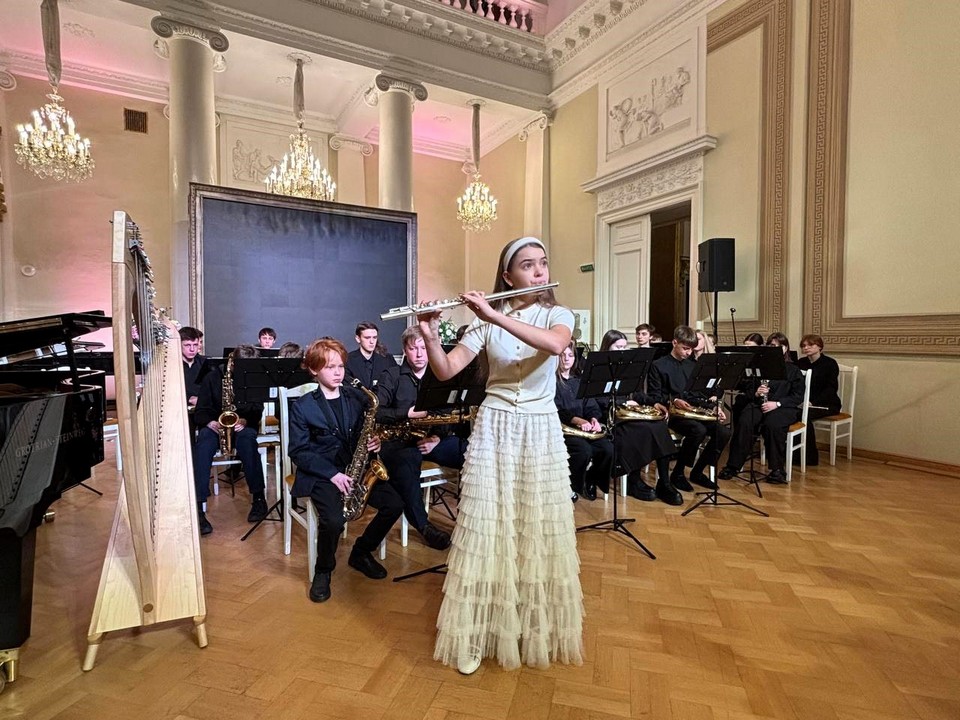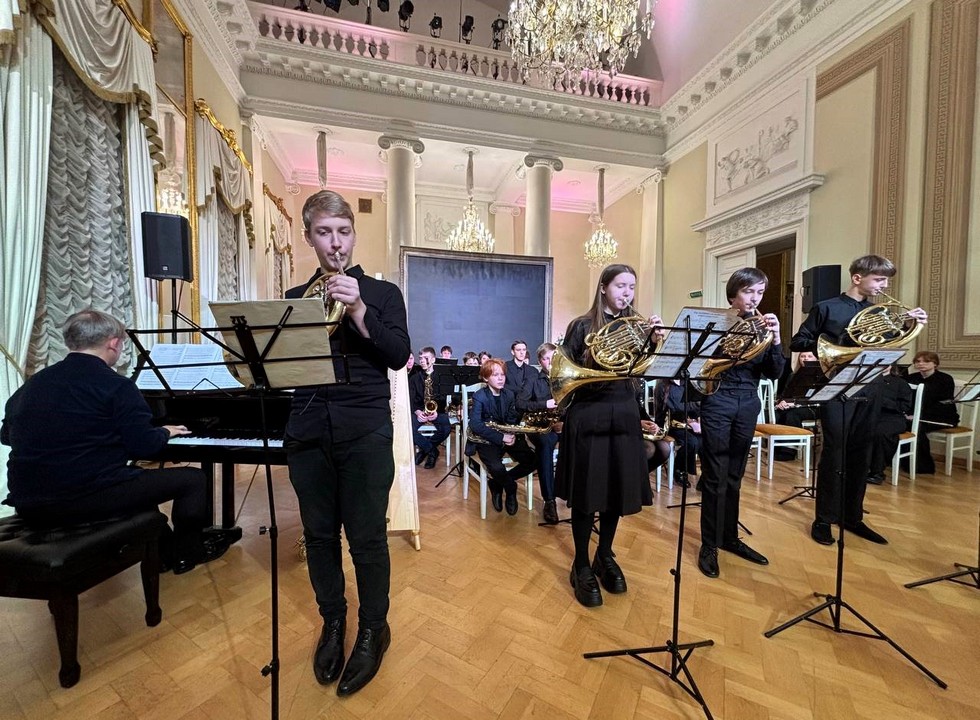 22 ноября в Белоколонном зале Аничкова дворца прошел отчётный концерт Духового оркестра, руководителем которого является И.В. Кузнецов. Концерт стал площадкой для демонстрации талантов учащихся всех классов обучения, представивших свое мастерство игры на таких музыкальных инструментах, как флейта, гобой, кларнет, валторна, труба, тенор и саксофон. Помимо сольных выступлений, вниманию зрителей были представлены выступления ансамблевых составов: квартета валторн и дуэта флейтистов.