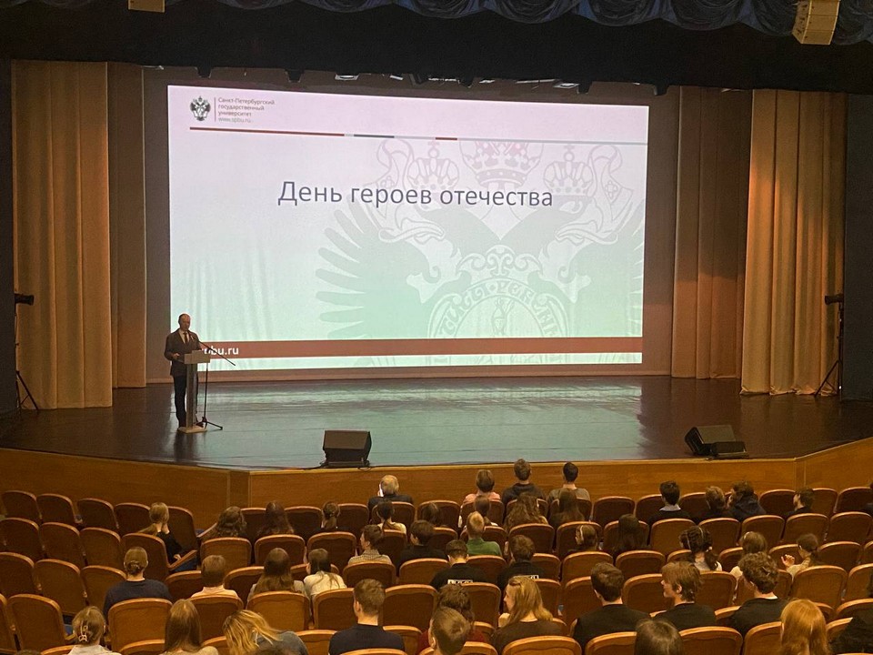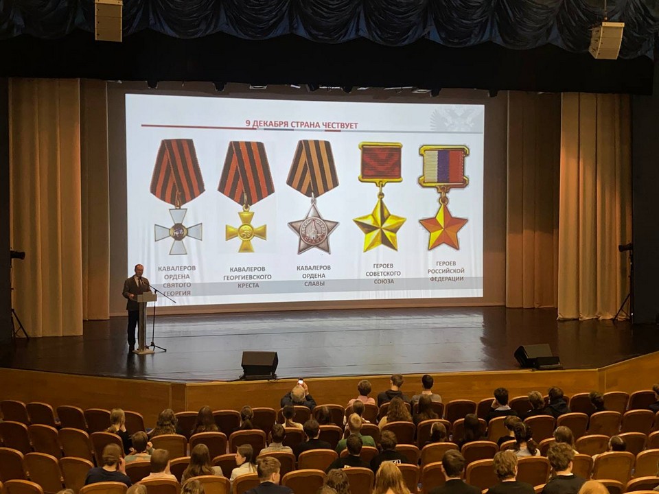 В рамках внеурочных занятий «Разговоры о важном» восьмого декабря в Аничковом лицее состоялась лекция, приуроченная ко Дню Героев Отечества. Выступил перед учащимися Кирилл Борисович Назаренко – доктор исторических наук, профессор, заведующий кафедрой источниковедения истории России Института истории Санкт-Петербургского государственного университета, а также учитель истории Аничкова лицея.