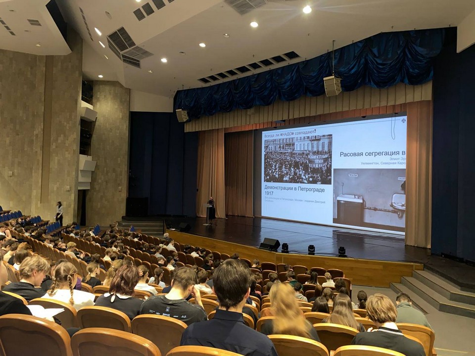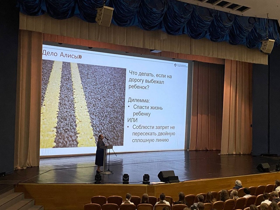 Мария Сергеевна рассказала лицеистам, в чём разница между понятиями «закон» и «справедливость», почему важно, чтобы правовые нормы служили не только порядку, но и человеческому достоинству. Слушатели вместе размышляли над сложными этическими и правовыми дилеммами, в том числе обсудили дело Алисы – широко известную историю, ставшую символом столкновения буквы закона и общественного чувства справедливости.