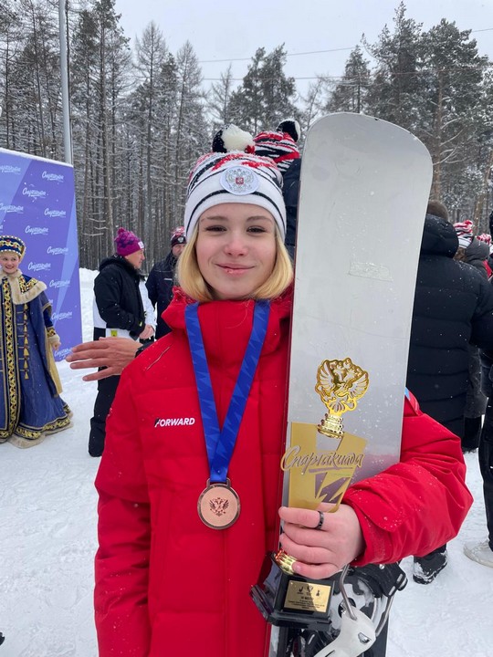 На соревнованиях по сноуборду в дисциплине «слалом-гигант» Снежана завоевала бронзовую медаль, а в дисциплине «слалом» спортсменка стала обладательницей золотой медали!
