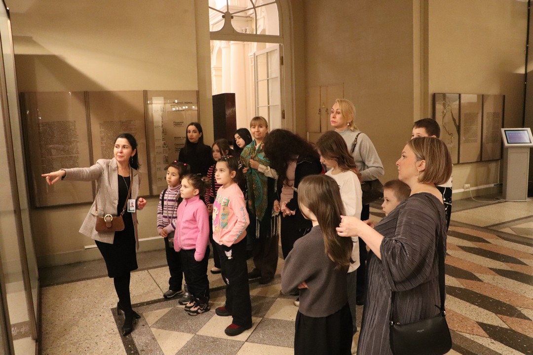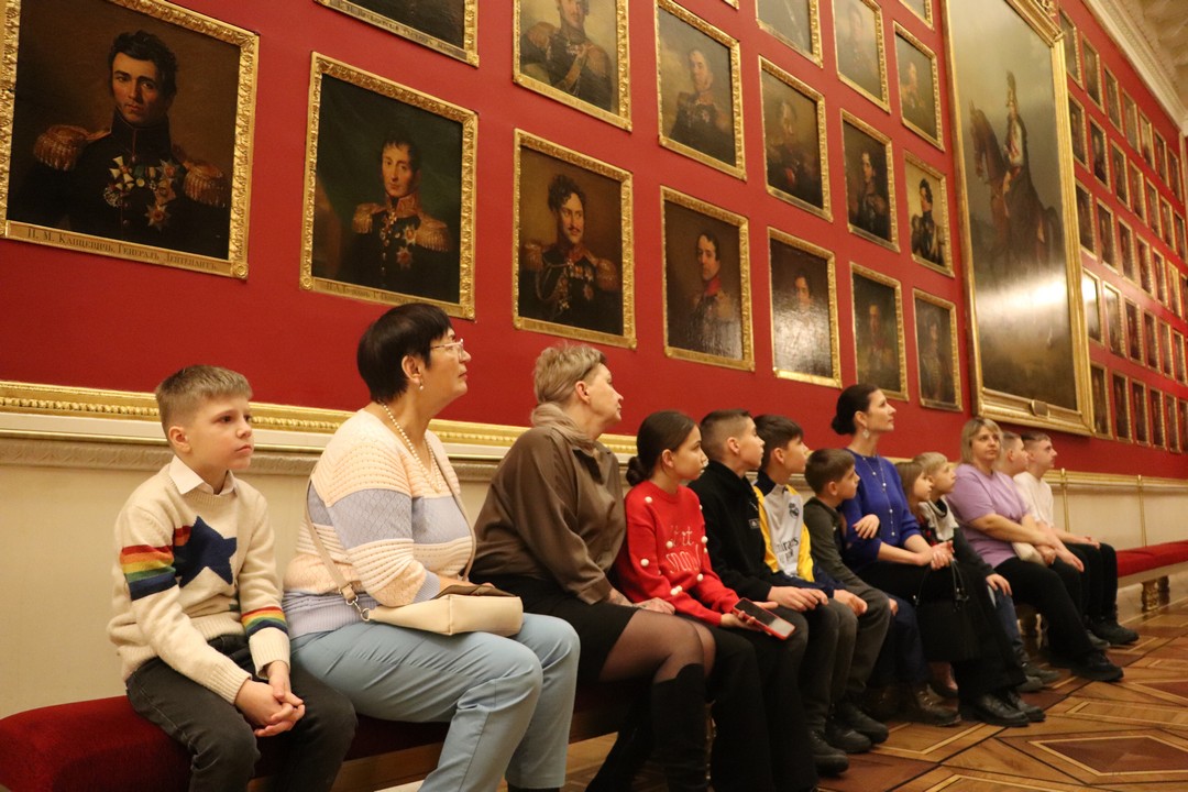 Специальная двухдневная программа была организована для детей военнослужащих, находящихся в длительных командировках и в зоне проведения специальной военной операции. Они посетили мастер-класс «Рождественская декоративная композиция» от педагога Отдела предшкольного образования Дворца Александры Викторовны Ершовой, побывали на экскурсии по новогоднему Петербургу вместе с Ильей Владимировичем Вагановым, посетили Эрмитаж и современное культурное пространстве «Новая Голландия». А перед спектаклем ребята собрались в Универсальном читальном зале Библиотеки Аничкова дворца, где их поздравили с наступающими праздниками и вручили новогодние подарки, генеральный директор Санкт-Петербургского городского Дворца творчества юных Мария Катунова, временно исполняющий обязанности заместителя командующего войсками Ленинградского военного округа по военно-политической работе полковник Виталий Владимирович Янковец и заместитель председателя Комитета по образованию Санкт-Петербурга Петр Владимирович Кузьмин. «Дорогие ребята и их родители, от командования Ленинградского военного округа я поздравляю вас! Как же здорово встречать Новый год в таком историческом месте. Желаю всего наилучшего, чтобы все ваши самые заветные мечты исполнились! С наступающим Новым годом!», – отметил Виталий Владимирович.