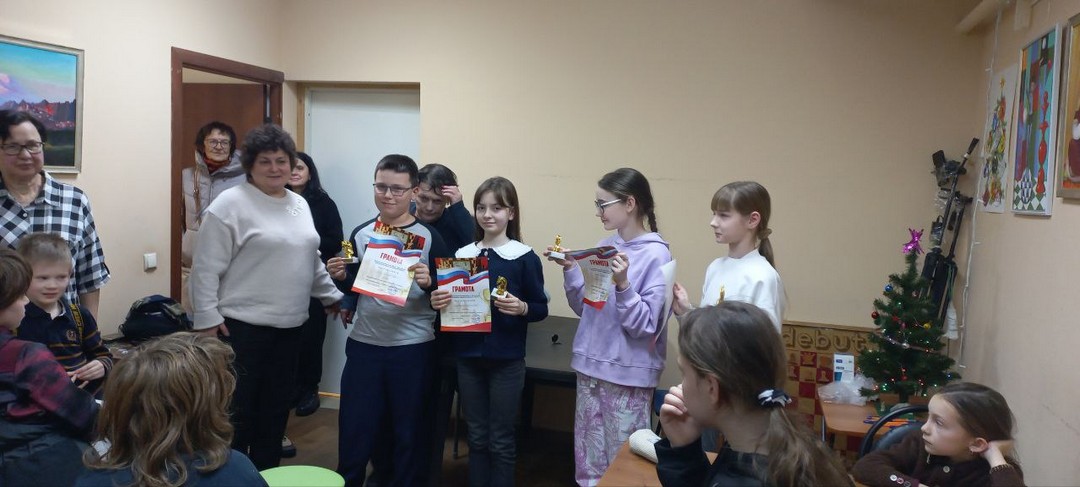 Ребята отправились в шахматный клуб города Всеволожска. Там прошёл конкурс по шахматной композиции. Победители были награждены кубками и грамотами, также все участники получили призы от Деда Мороза.