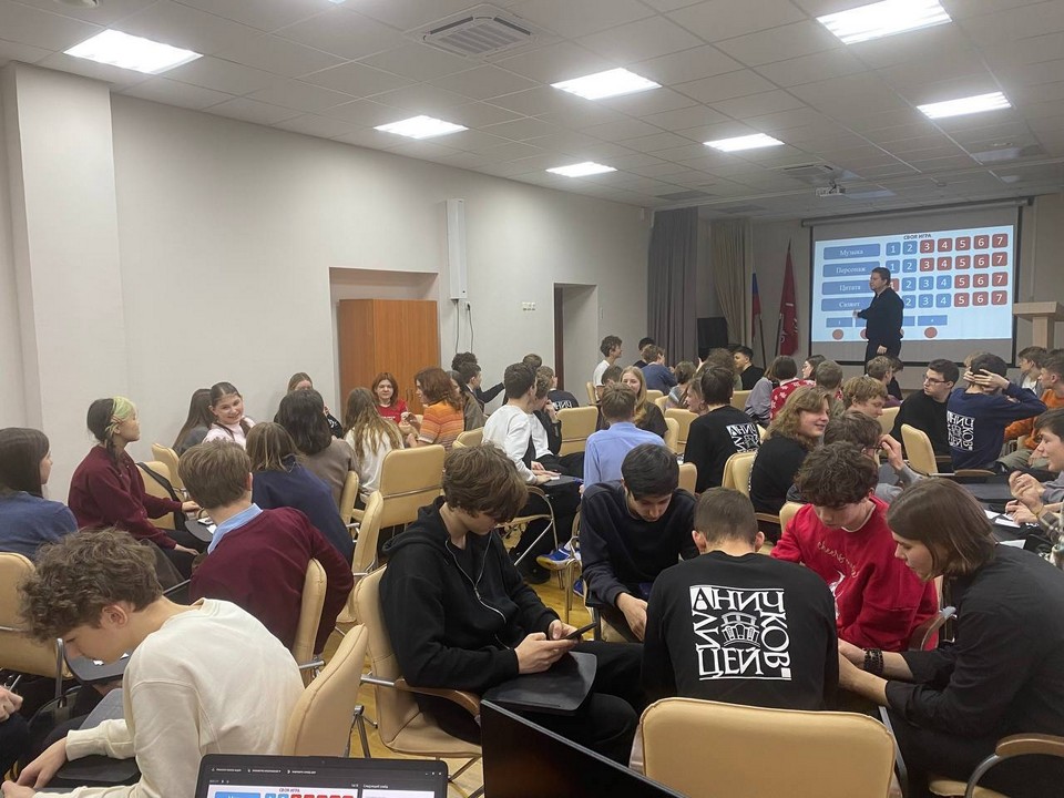 В преддверии Нового года в Аничковом лицее прошла «Своя игра» – для учащихся 8 и 9 классов, объединённых общей темой добра, дружбы и вселенной любимого мультсериала «Смешарики».