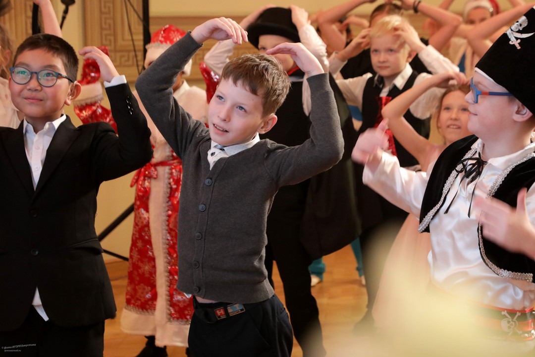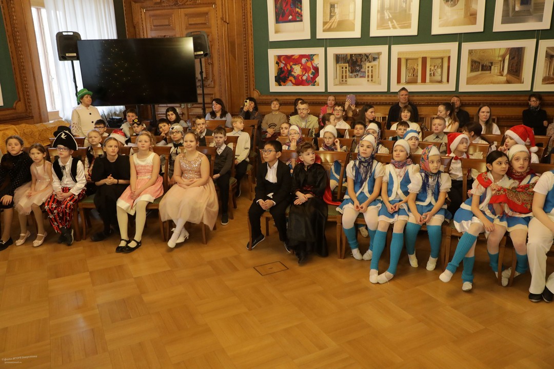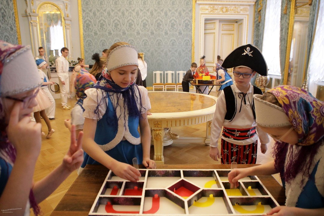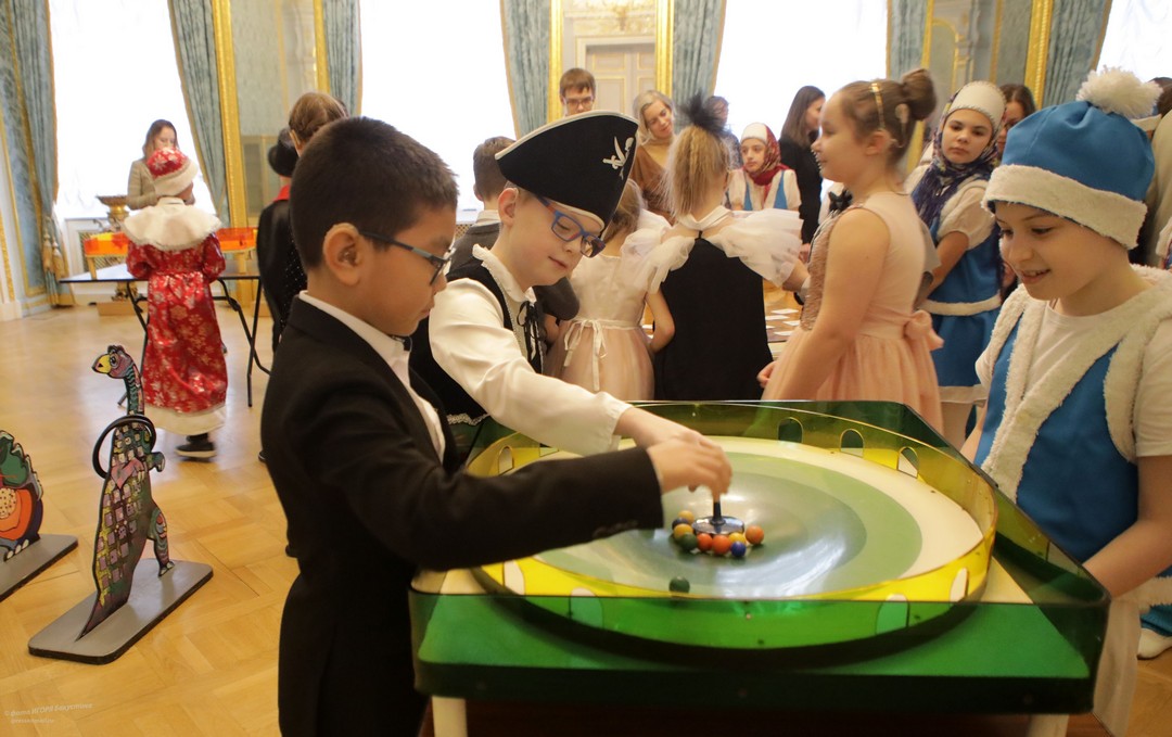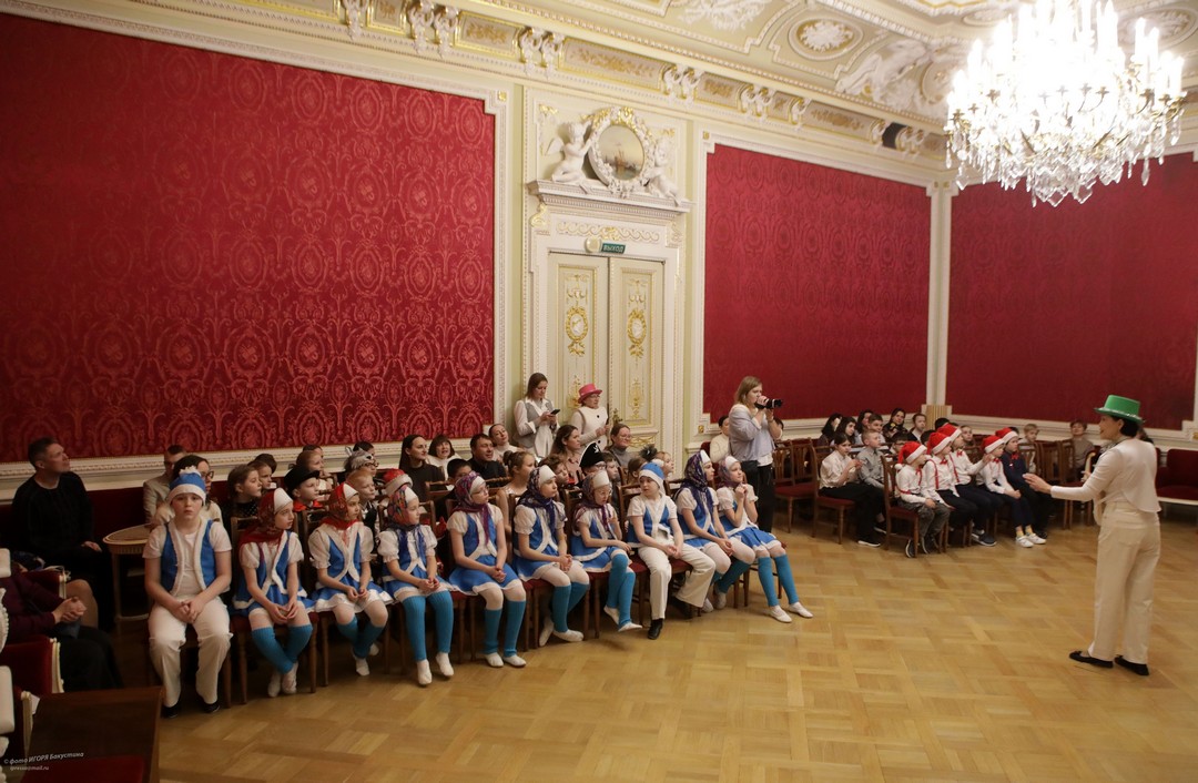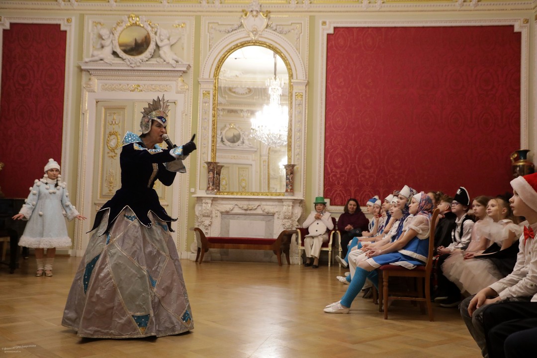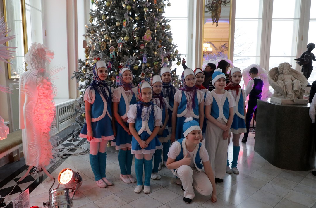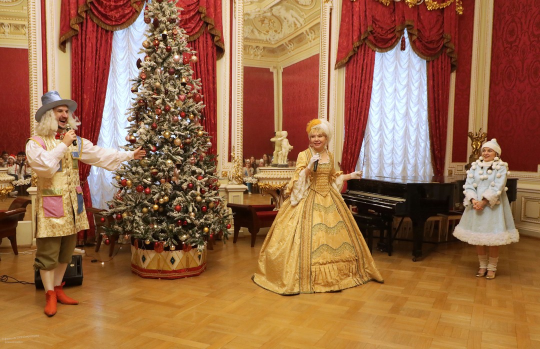 Программа представляла собой яркое сочетание театрального действа вокруг главной новогодней красавицы, костюмированного шоу и выступлений, организованных самими детьми, а также увлекательного путешествия по историческим парадным залам Дворца, наполненного играми и заданиями.