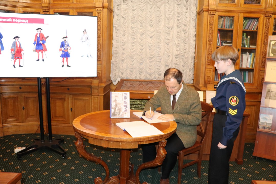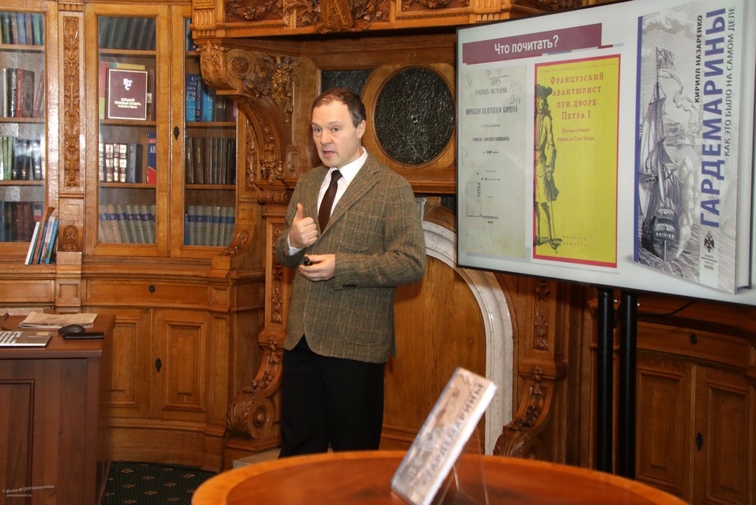 4 февраля в Универсальном читальном зале Библиотеки Аничкова дворца состоялась презентация новой книги доктора исторических наук, профессора СПбГУ и учителя истории Аничкова лицея Кирилла Борисовича Назаренко «Гардемарины. Как это было на самом деле».