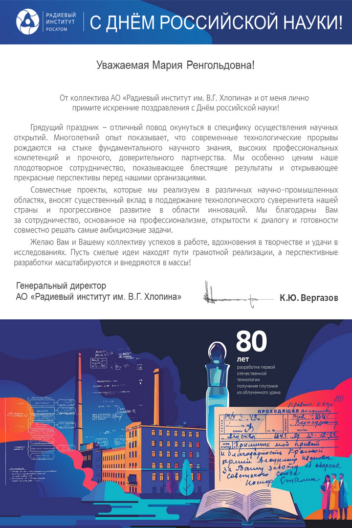 Поздравления с Днём российской науки от коллег и партнёров Дворца!